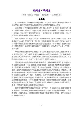 33%u6d3b%u5230%u8001%u3001%u5b78%u5230%u8001(%u9577%u8005%u201c%u6d3b%u5230%u8001%u3001%u5b78%u5230%u8001%u201d%u5fb5%u6587%u6bd4%u8cfd%uff5e%u4e09%u7b49%u734e%u4f5c%u54c1)%u502b%u6c38%u9326%u65e9%u4e0a%u6211%u63d0%u8457%u66f8%u5305%uff0c%u8e0f%u8457%u8f15%u5feb%u7684%u8173%u6b65%uff0c%u8d95%u5f80%u9577%u8005%u66f8%u9662%u4e0a%u5b78%uff0c%u516d%u5341%u5e74%u524d%u7684%u6211%u4e5f%u662f%u9019%u6a23%u4e0a%u5b78%u53bb%uff0c%u4f46%u4e0d%u540c%u7684%u662f%u6211%u73fe%u5df2%u500b%u767d%u9aee%u7fc1%u548c%u6c92%u6709%u5abd%u5abd%u53eb%u9192%u50ac%u4fc3%u4e0a%u5b78%u4e86%u3002%u5149%u9670%u98db%u901d%uff0c%u5c11%u5e74%u6642%u56e0%u5bb6%u5ead%u7d93%u6fdf%u800c%u5931%u5b78%uff0c%u5230%u793e%u6703%u5de5%u4f5c%uff0c%u66fe%u7d93%u5728%u591a%u500b%u884c%u696d%u5e79%u6d3b%uff0c%u96d6%u7136%u53ea%u6709%u521d%u4e2d%u5b78%u6b77%uff0c%u4f46%u662f%u5728%u5de5%u9918%u6642%u70ba%u4e86%u5145%u5be6%u81ea%u5df1%uff0c%u4e5f%u6709%u4e0a%u9032%u4fee%u73ed%uff0c%u800c%u5728%u8077%u5834%u4e0a%u4e5f%u5b78%u904e%u4e00%u4e9b%u77e5%u8b58%u3002%u4e0d%u904e%u7531%u65bc%u300c%u66f8%u5230%u7528%u6642%u65b9%u6068%u5c11%u300d%uff0c%u751f%u6d3b%u548c%u5de5%u4f5c%u4e0a%u7e3d%u9047%u5230%u4e0d%u5c11%u56f0%u96e3%uff0c%u6240%u4ee5%u81ea%u5df1%u5ff5%u5ff5%u4e0d%u5fd8%u60f3%u7e7c%u7e8c%u5b78%u7fd2%uff0c%u60f3%u91cd%u8e0f%u6821%u5712%u3002%u524d%u5e74%u6211%u7d42%u65bc%u9000%u4e0b%u5de5%u4f5c%u5d17%u4f4d%uff0c%u5728%u5bb6%u4eba%u7684%u9f13%u52f5%u548c%u652f%u6301%u4e0b%uff0c%u6c7a%u5fc3%u5831%u8b80%u9577%u8005%u66f8%u9662%uff0c%u5f8c%u4f86%u5e78%u904b%u5730%u53ef%u4ee5%u5165%u8b80%uff0c%u5728%u6c39%u4ed4%u6821%u5340%u4e0a%u8ab2%u3002%u7b2c%u4e00%u5929%u8e0f%u9032%u6821%u5712%u5c31%u662f%u53c3%u52a0%u65b0%u751f%u4ecb%u7d39%u6703%uff0c%u6703%u4e0a%u5de5%u4f5c%u4eba%u54e1%u5411%u6211%u5011%u65b0%u751f%u4ecb%u7d39%u5b78%u6821%u7684%u60c5%u6cc1%u548c%u8a2d%u65bd%uff0c%u65bc%u662f%u6211%u9078%u4fee%u4e86%u4e2d%u6587%u3001%u85e5%u81b3%u3001%u8461%u8a9e%u7b49%u79d1%u76ee%uff0c%u6c92%u4e0a%u5b78%u9577%u6642%u9593%u4e86%uff0c%u771f%u6e34%u671b%u591a%u5b78%u9ede%u77e5%u8b58%u548c%u591a%u8a8d%u8b58%u65b0%u4e8b%u7269%u3002%u56e0%u70ba%u6709%u5fc3%u4e0d%u6015%u9072%uff0c%u6d3b%u5230%u8001%u3001%u5b78%u5230%u8001%u561b!%u5b78%u6821%u7684%u74b0%u5883%u8212%u9069%u548c%u6559%u5b78%u8a2d%u5099%u9f4a%u5168%uff0c%u4e0d%u4f46%u5e2b%u8cc7%u512a%u826f%uff0c%u800c%u4e14%u6821%u5167%u54e1%u5de5%u5011%u90fd%u5f88%u597d%u548c%u6709%u79ae%u8c8c%uff0c%u5c0d%u65bc%u6211%u5011%u4e00%u773e%u300c%u5927%u9f61%u5b78%u751f%u300d%u90fd%u5f88%u95dc%u9867%uff0c%u826f%u597d%u7684%u5b78%u6821%u689d%u4ef6%u63a8%u52d5%u4e86%u6211%u5011%u7a4d%u6975%u5b78%u7fd2%u3002%u9084%u8a18%u5f97%u6b63%u5f0f%u4e0a%u8ab2%u6211%u7b2c%u4e00%u5929%uff0c%u5fc3%u60c5%u65e2%u8208%u596e%u53c8%u7dca%u5f35%uff0c%u5750%u5728%u8ab2%u5ba4%u5f88%u671f%u5f85%u8001%u5e2b%u4f86%u4e0a%u8ab2%u3002%u6211%u5728%u5404%u79d1%u76ee%u4e2d%u8a8d%u8b58%u4e86%u4e0d%u5c11%u300c%u540c%u5b78%u4ed4%u300d%uff0c%u4ed6%u5011%u90fd%u662f%u5c0d%u6c42%u5b78%u5f88%u6709%u71b1%u8aa0%u3002%u5b78%u9662%u88cf%u7684%u8001%u5e2b%u90fd%u975e%u5e38%u7528%u5fc3%u8b1b%u8ab2%u548c%u5099%u8ab2%uff0c%u4f7f%u6211%u5011%u611f%u5230%u5728%u8f15%u9b06%u5b78%u7fd2%u4e4b%u9918%uff0c%u589e%u9577%u4e86%u5f88%u591a%u77e5%u8b58%u548c%u793e%u6703%u8cc7%u8a0a%uff0c%u53e6%u5916%uff0c%u56e0%u61c9%u5b78%u751f%u7684%u5b78%u7fd2%u9700%u8981%uff0c%u8001%u5e2b%u53c8%u6703%u8abf%u7bc0%u6559%u5b78%u5167%u5bb9%u548c%u9032%u5ea6%u3002%u81f3%u65bc%u5982%u4f55%u8b93%u77e5%u8b58%u6d3b%u5b78%u6d3b%u7528%uff0c%u4f8b%u5982%uff0c%u4e0a%u4e2d%u6587%u8ab2%u6642%u8001%u5e2b%u8b1b%u89e3%u4e86%u8a31%u591a%u4e2d%u570b%u6587%u5316%u77e5%u8b58%u548c%u8a69%u8a5e%u6b4c%u8ce6%uff0c%u9019%u4e9b%u6709%u52a9%u6211%u5011%u52a0%u5f37%u4e2d%u6587%u7684%u8868%u9054%u80fd%u529b%u548c%u5c0d%u50b3%u7d71%u6587%u5316%u7684%u6b23%u8cde%u80fd%u529b%u3002%u85e5%u81b3%u8ab2%u4e0a%uff0c%u900f%u904e%u8001%u5e2b%u7684%u8a73%u7d30%u8b1b%u89e3%uff0c%u4f7f%u6211%u5011%u5c0d%u4e2d%u85e5%u6709%u66f4%u591a%u8a8d%u8b58%uff0c%u61c2%u5f97%u5982%u4f55%u4fdd%u5065%u990a%u751f%uff0c%u8ab2%u5f8c%u540c%u5b78%u5011%u4ea6%u4e0d%u6642%u4e92%u76f8%u4ea4%u6d41%u98df%u7642%u5fc3%u5f97%u3002%u9084%u6709%uff0c%u8461%u8a9e%u8ab2%u4e0a%uff0c%u8001%u5e2b%u5229%u7528%u751f%u52d5%u6709%u8da3%u7684%u6559%u5b78%u5f62%u5f0f%uff0c%u4f7f%u6211%u5011%u5c0d%u8461%u570b%u6587%u5316%u548c%u8a9e%u8a00%u6709%u66f4%u591a%u8a8d%u8b58%uff0c%u73fe%u5728%u6211%u5728%u8def%u4e0a%u770b%u898b%u6709%u8461%u8a9e%u7684%u51fa%u73fe%uff0c%u4e5f%u6703%u591a%u7559%u610f%u548c%u5617%u8a66%u4e86%u89e3%u5176%u767c%u97f3%u548c%u610f%u601d%u3002%u4eca%u5e74%u6211%u53c8%u5831%u8b80%u4e86%u66f8%u6cd5%u73ed%uff0c%u8001%u5e2b%u8aaa%u5b78%u7fd2%u66f8%u6cd5%u9808%u6253%u597d%u57fa%u790e%uff0c%u529f%u5e95%u8981%u7d2e%u5be6%u548c%u591a%u52a0%u7df4%u7fd2%u624d%u6703%u6709%u9032%u6b65%uff0c%u6211%u89ba%u5f97%u5b78%u5230%u8001%u4e5f%u8981%u7df4%u5230%u8001%u3002%u5b78%u5beb%u66f8%u6cd5%u4e0d%u55ae%u53ef%u4ee5%u4fee%u5fc3%u990a%u6027%uff0c%u540c%u6642%u53c8%u53ef%u63d0%u9ad8%u81ea%u5df1%u5c0d%u85dd%u8853%u7684%u6b23%u8cde%u80fd%u529b%u3002%u6211%u5728%u9577%u8005%u66f8%u9662%u5b78%u7fd2%u6709%u6eff%u6eff%u7684%u5e78%u798f%u611f%uff0c%u60f3%u4e0d%u5230%u516d%u5341%u591a%u5e74%u5f8c%u7684%u4eca%u5929%uff0c%u6211%u9084%u6709%u6a5f%u6703%u5be6%u73fe%u91cd%u56de%u5b78%u6821%u4e0a%u8ab2%u7684%u9858%u671b%uff0c%u5f88%u611f%u8b1d%u5b78%u9662%u8001%u5e2b%u7684%u8010%u5fc3%u6559%u5c0e%u548c%u540c%u5b78%u5011%u7684%u53cb%u5584%u95dc%u61f7%u3002%u300c%u83ab%u9053%u6851%u6986%u665a%uff0c%u70ba%u971e%u5c1a%u6eff%u5929%u300d%uff0c%u6211%u76f8%u4fe1%u6211%u5011%u9577%u8005%u901a%u904e%u4e0d%u65b7%u5b78%u7fd2%u548c%u81ea%u6211%u589e%u503c%uff0c%u90fd%u53ef%u4ee5%u6d3b%u51fa%u4eba%u751f%u66f4%u7cbe%u5f69%u7684%u4e00%u9801%u3002